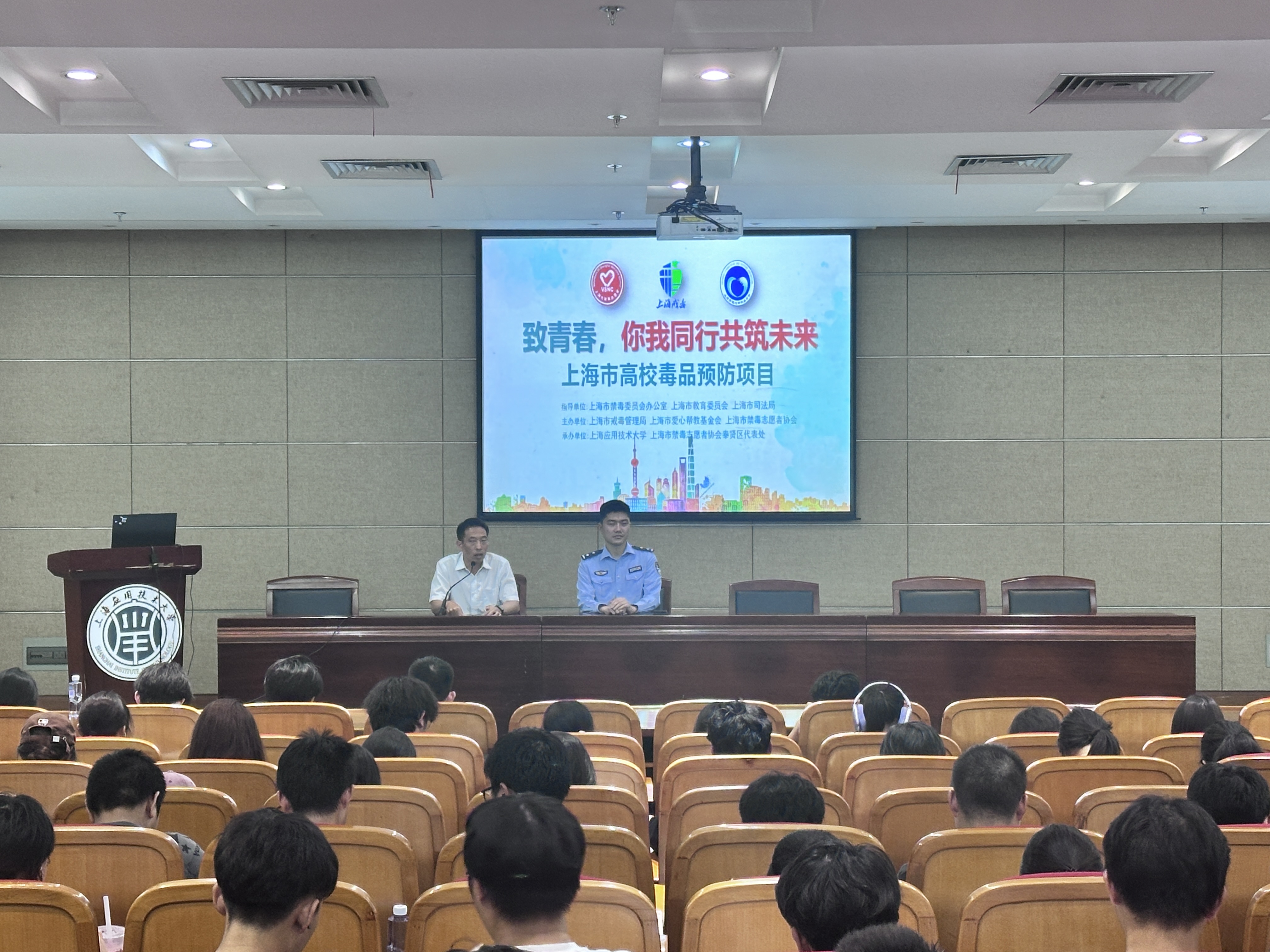 10月14日,由上海市戒毒管理局、上海市爱心帮教基金会和上海市禁毒志愿者协会主办,我校承办以“致青春,你我同行共筑未来”为主题的上海市高校毒品预防教育讲座在奉贤校区顺利开展。奉贤区政法委禁毒室、校安全保卫处及城市建设与生态技术学部相关人员出席。本次讲座邀请上海市崧泽强制隔离戒毒所二大队陈延泽警官主题宣讲。