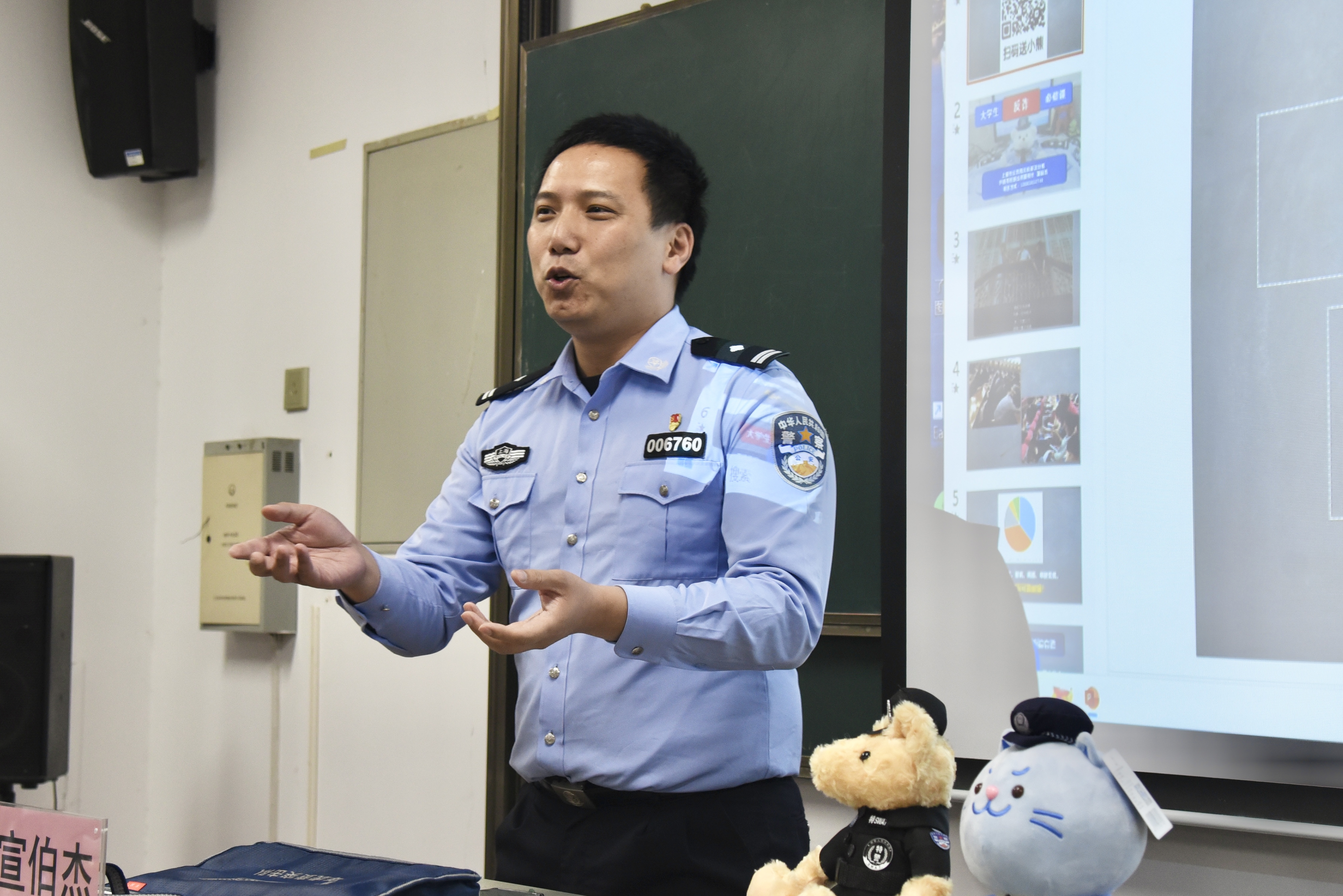 室内板块在艺术学院24号楼106多媒体教室开展,沪西高校派出所副所长宣伯杰以“反诈安全教育”为主题,结合大量真实的案例,以案说法,从学生身边的案例进行反诈防范宣讲。活动现场气氛热烈,同学们积极参与互动,踊跃发言,受到同学们的一致好评。