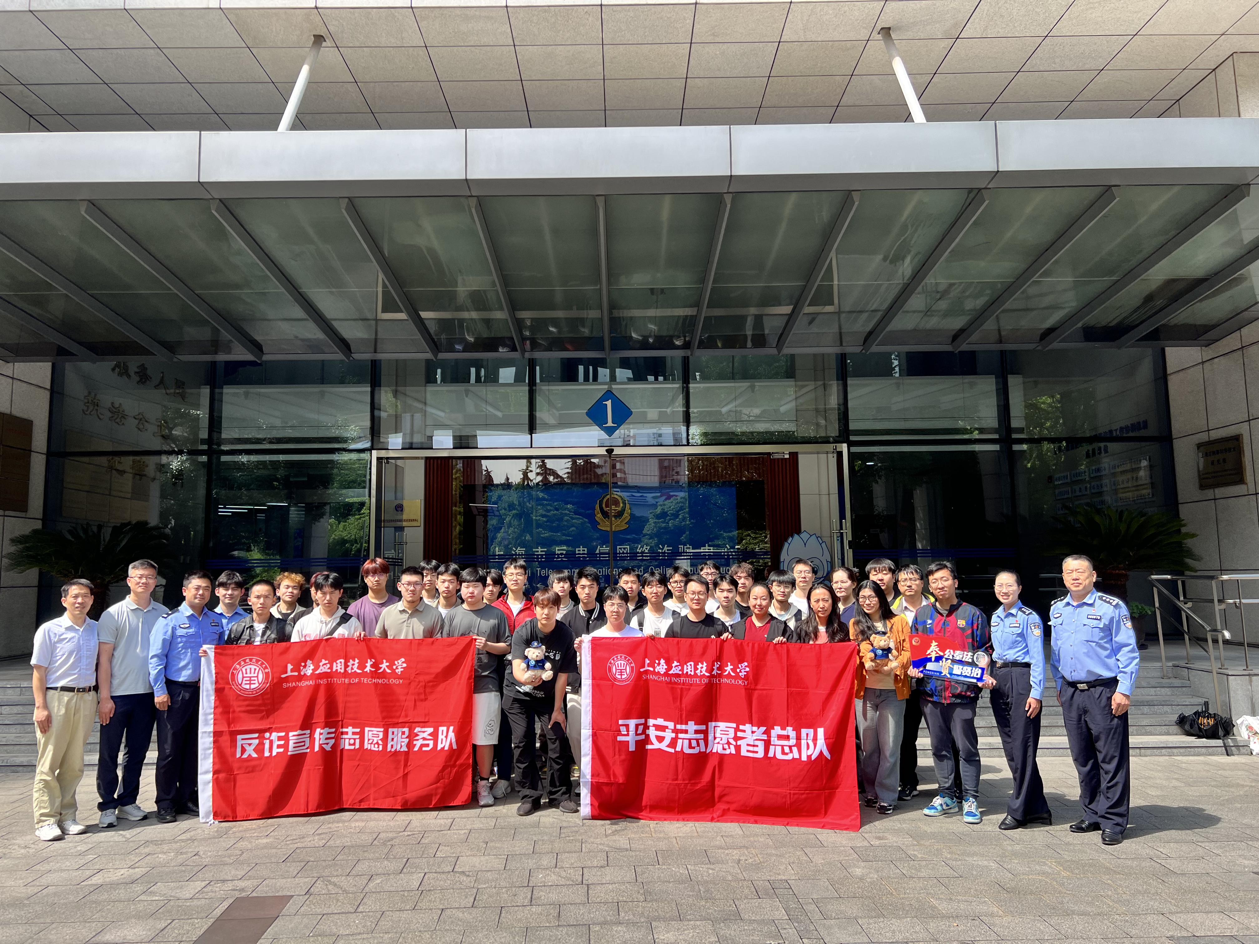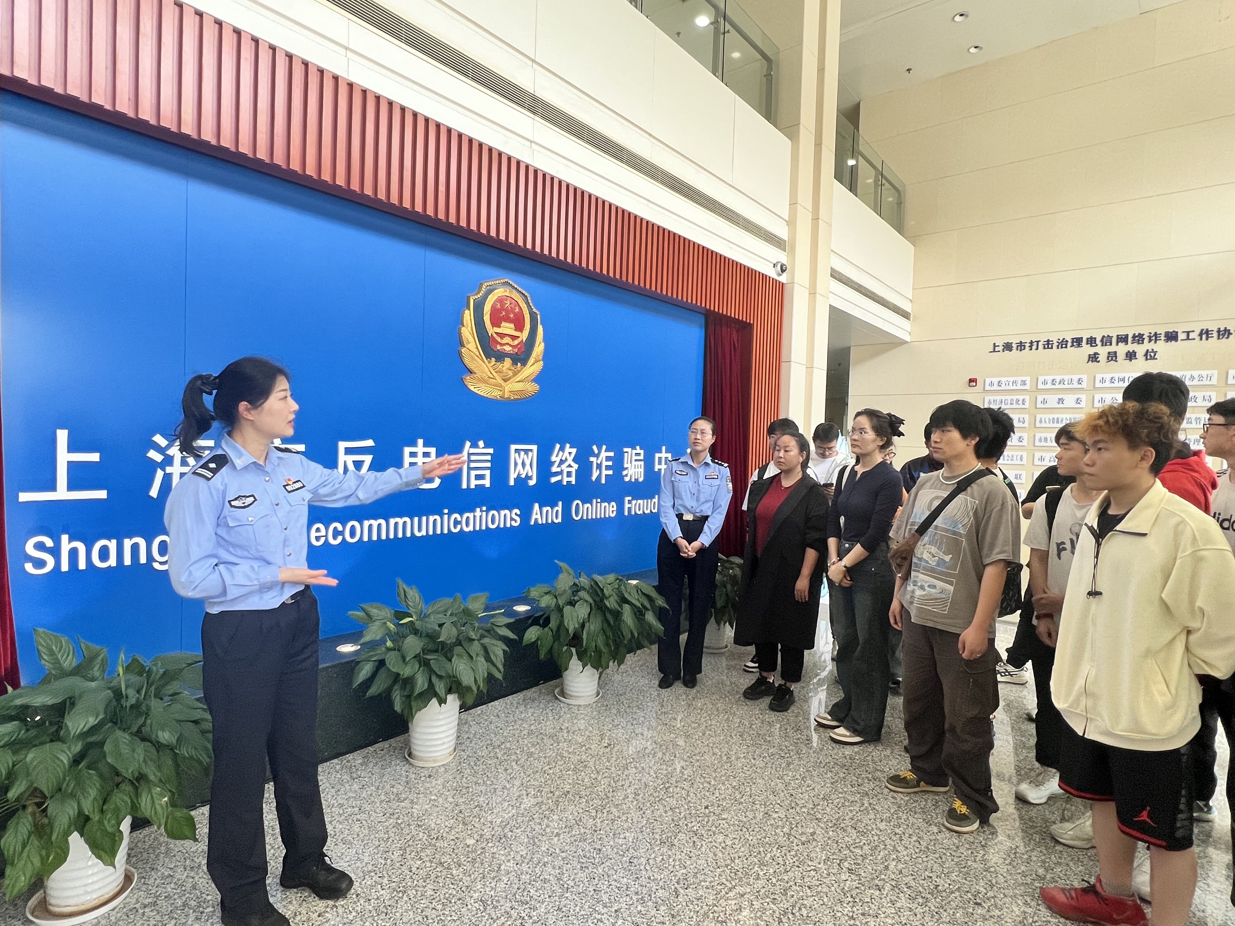 为提高我校师生反诈骗安全防范意识,充分发挥大学生在高校平安校园建设中自我教育、自我管理、自我服务、自我提升的作用, 6月6日,安全保卫处联合上海市文保分局“谢蜀黍工作室”、奉贤公安分局高校派出所,组织各二级学院(部)平安志愿者指导老师、部分校反诈宣传志愿服务队骨干及平安志愿者学生代表赴上海市反电信网络诈骗中心参观学习。