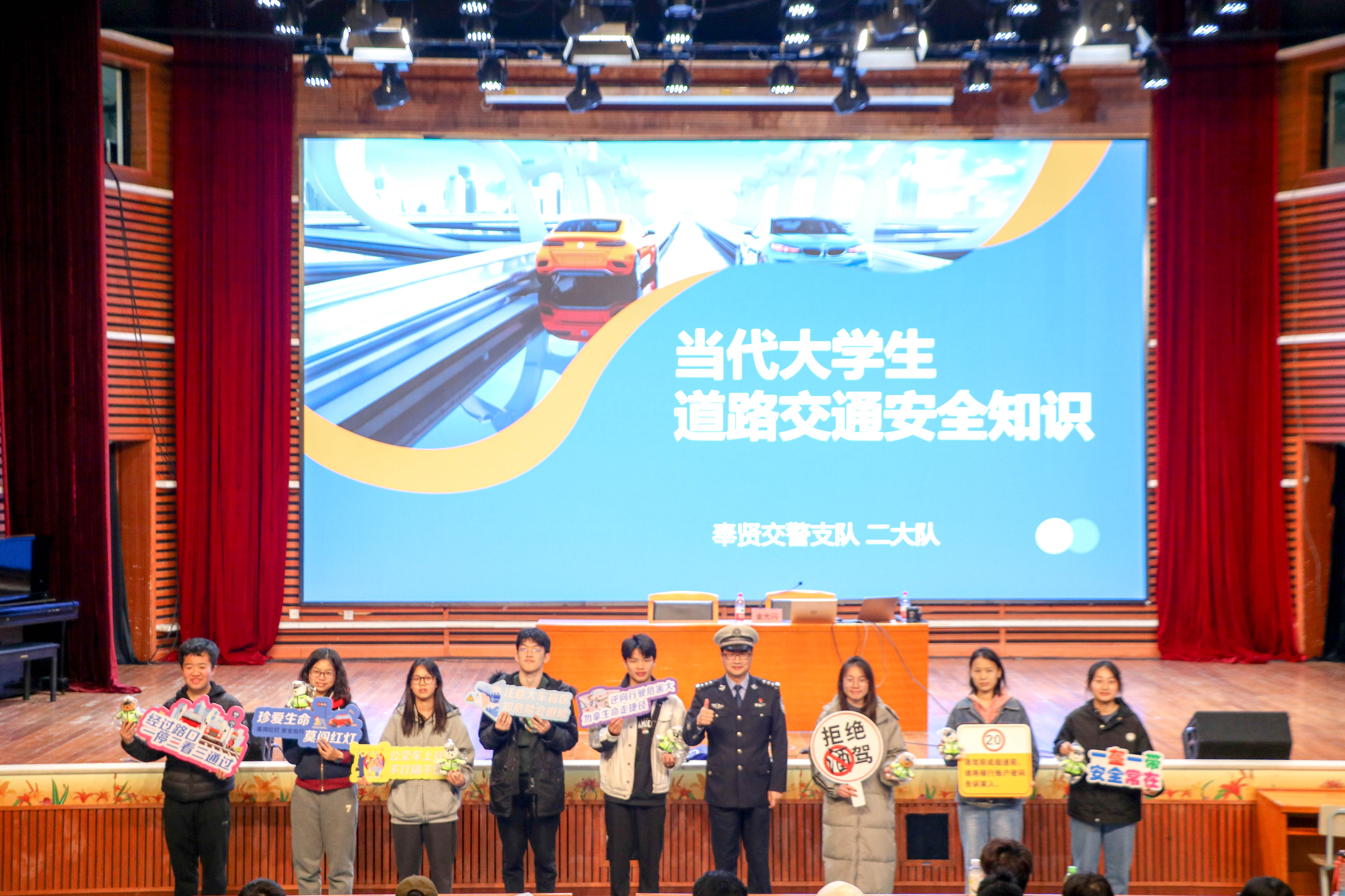 为提升我校学生安全防范意识,增强遵守交通法规的自觉性,3月28日,安全保卫处举办校园交通安全知识专题讲座,本次讲座邀请奉贤公安分局交警支队交通安全宣传民警金光闪警官。