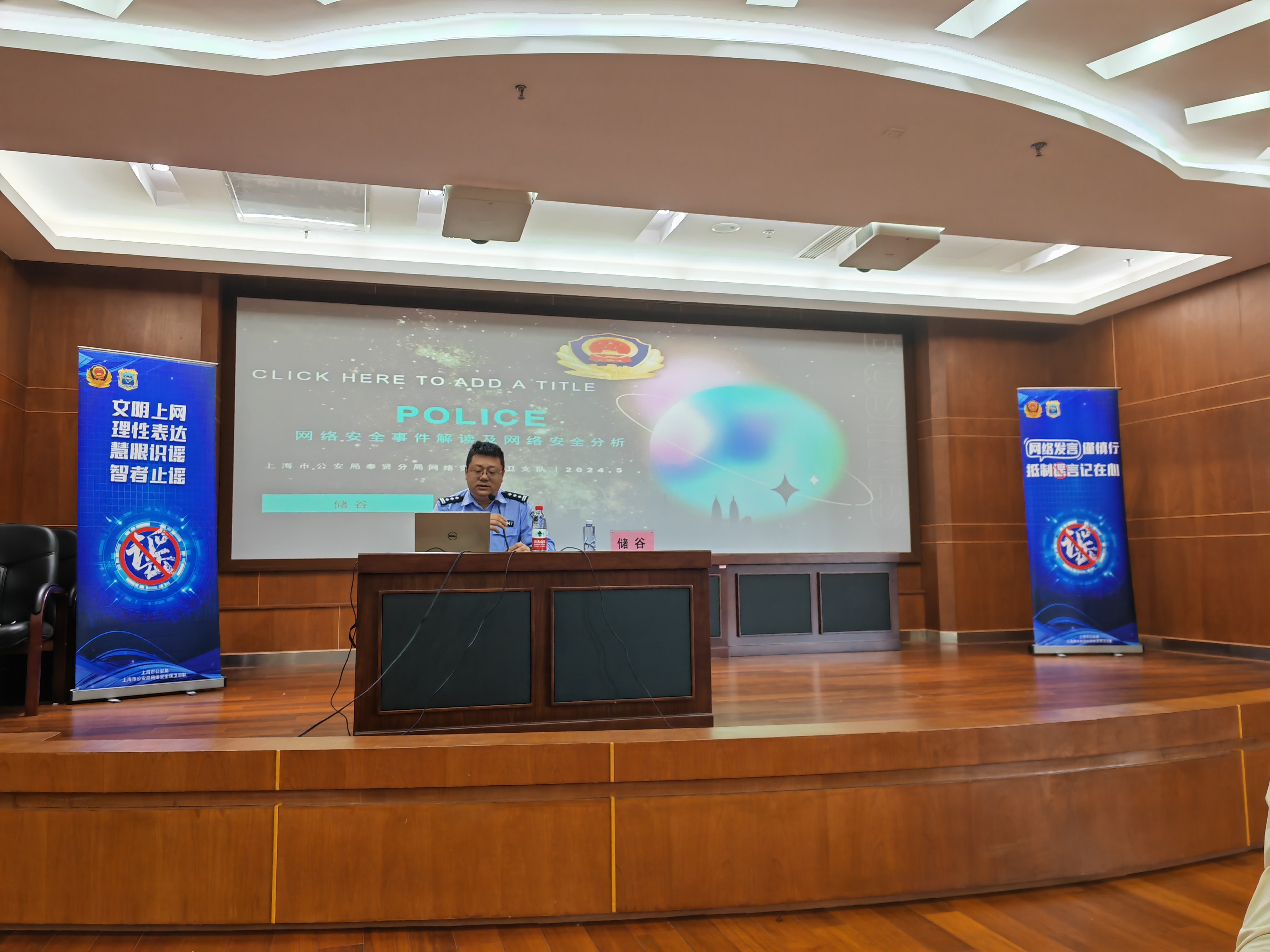 为加强我校平安志愿者网络安全意识,5月24日下午,由校安全保卫处、奉贤公安分局网安支队、海湾派出所、高校派出所联合举办网络安全事件解读及网络安全分析讲座。本次讲座由奉贤公安分局网安支队储谷警官主讲,通过传授和互动体验的教学方式,向平安志愿者们详细讲解国家安全及网络安全知识。