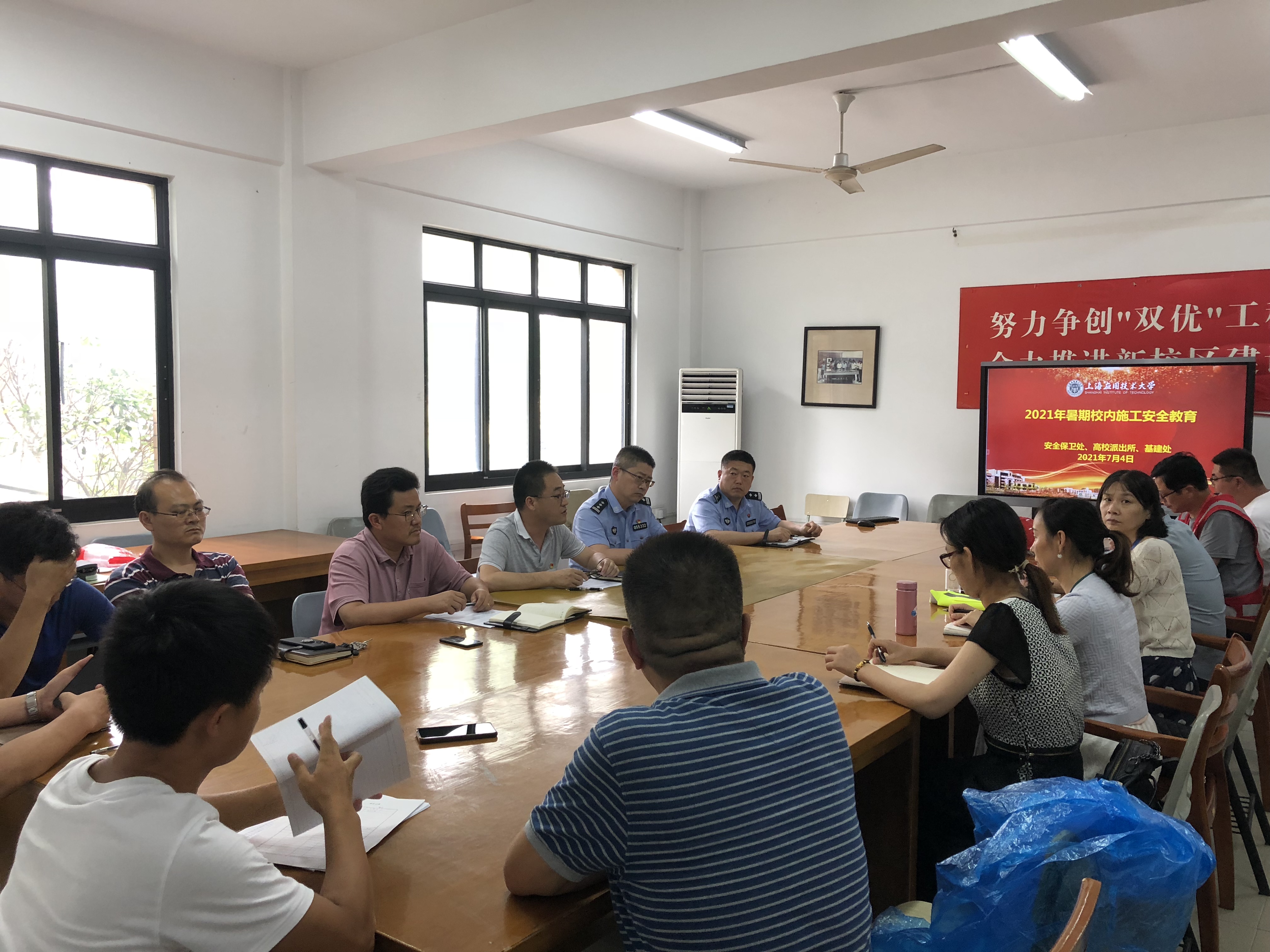 为做好暑期校园安全防范工作,加强第三方施工单位安全生产管理,7月4日下午,安全保卫处联合基建处、奉贤公安分局高校派出所,对暑期校内8家第三方施工单位负责人开展安全教育工作会议。