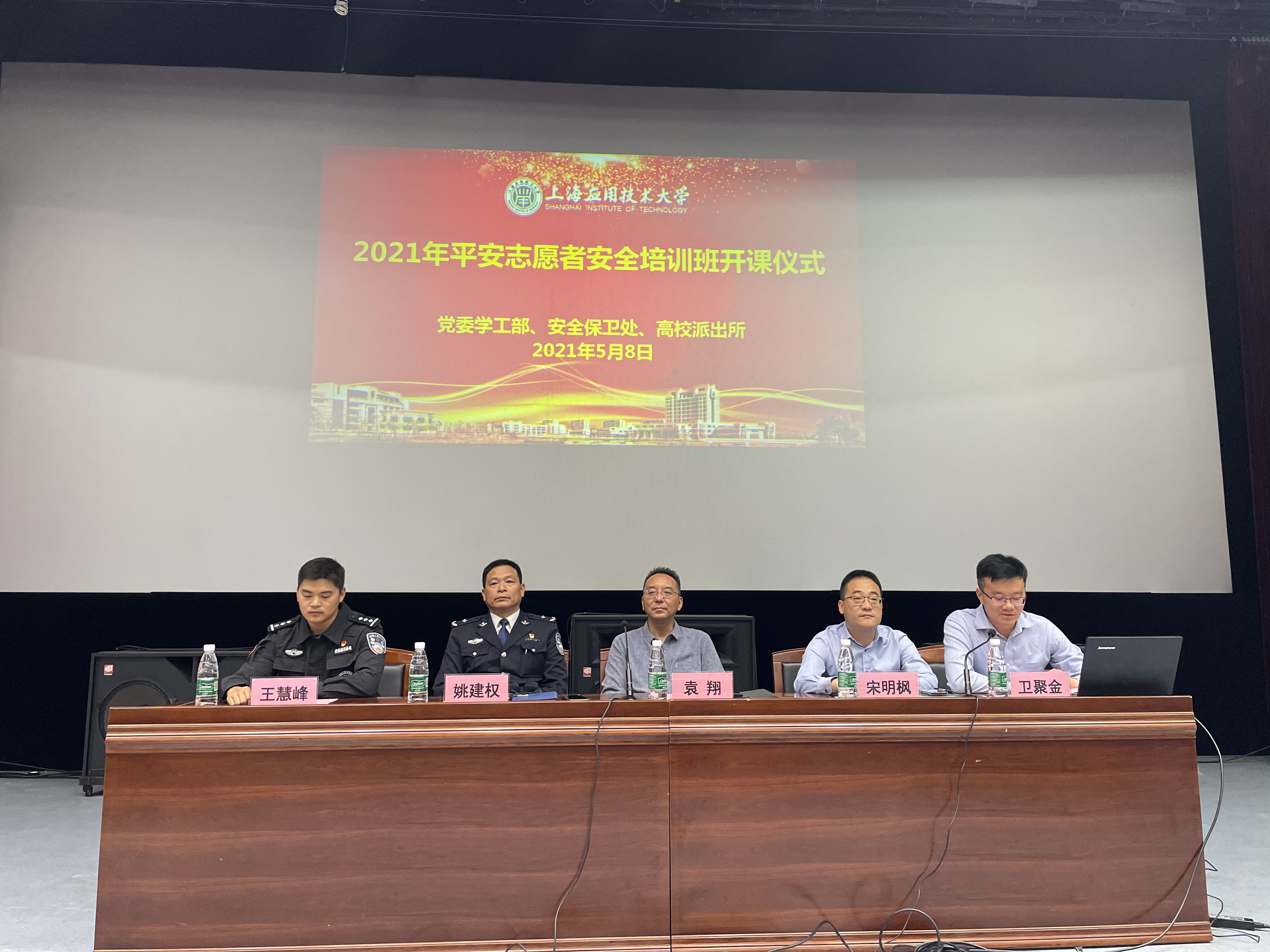 为充分发挥大学生在推进平安校园建设中自我管理、自我教育、自我提升的作用,5月8日下午,由安全保卫处联合党委学工部、奉贤公安分局高校派出所举办2021年平安志愿者安全培训班开班,安全保卫处处长宋明枫、党委学工部部长袁翔、奉贤公安分局高校派出所所长姚建权出席开课仪式,16个二级学院指导教师及400多名平安志愿者共同参与。