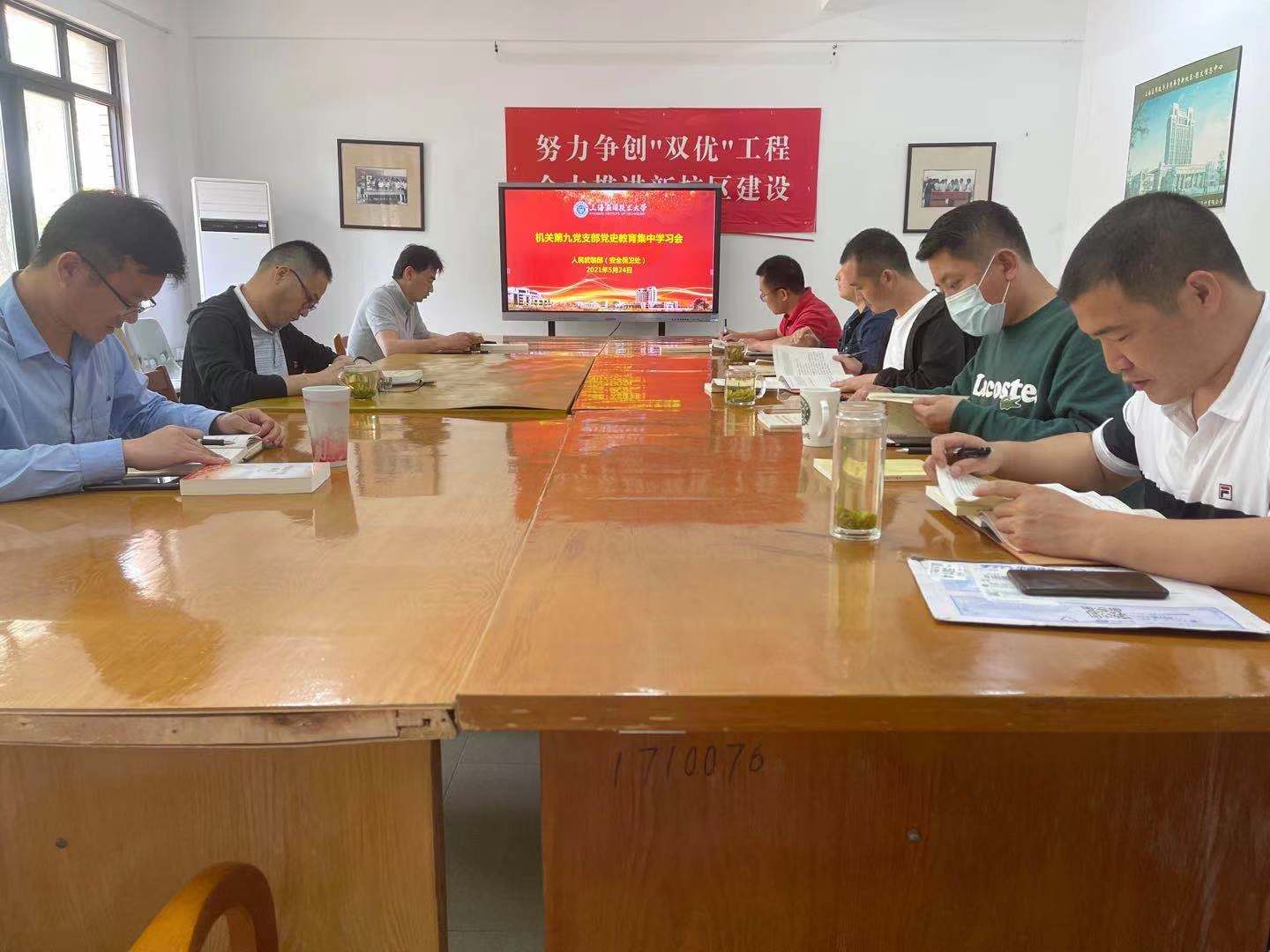 为抓好抓实党史学习教育,确保学习任务高质量完成,5月24日下午,机关第九党支部全体党员在党支部书记宋明枫带领下,按照既定计划以读书班的形式组织开展党史教育集中学习会。