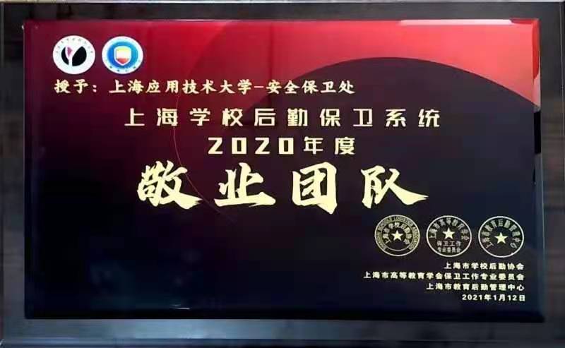 1月12日,上海学校后勤保卫系统2020年“感动人物”“敬业团队”“爱心企业”风采展示活动在上音歌剧院举行,共同表彰2020年奋战在一线的后勤、保卫员工,弘扬他们的敬业担当奉献精神。安全保卫处获得高校“2020年度敬业团队”荣誉称号。