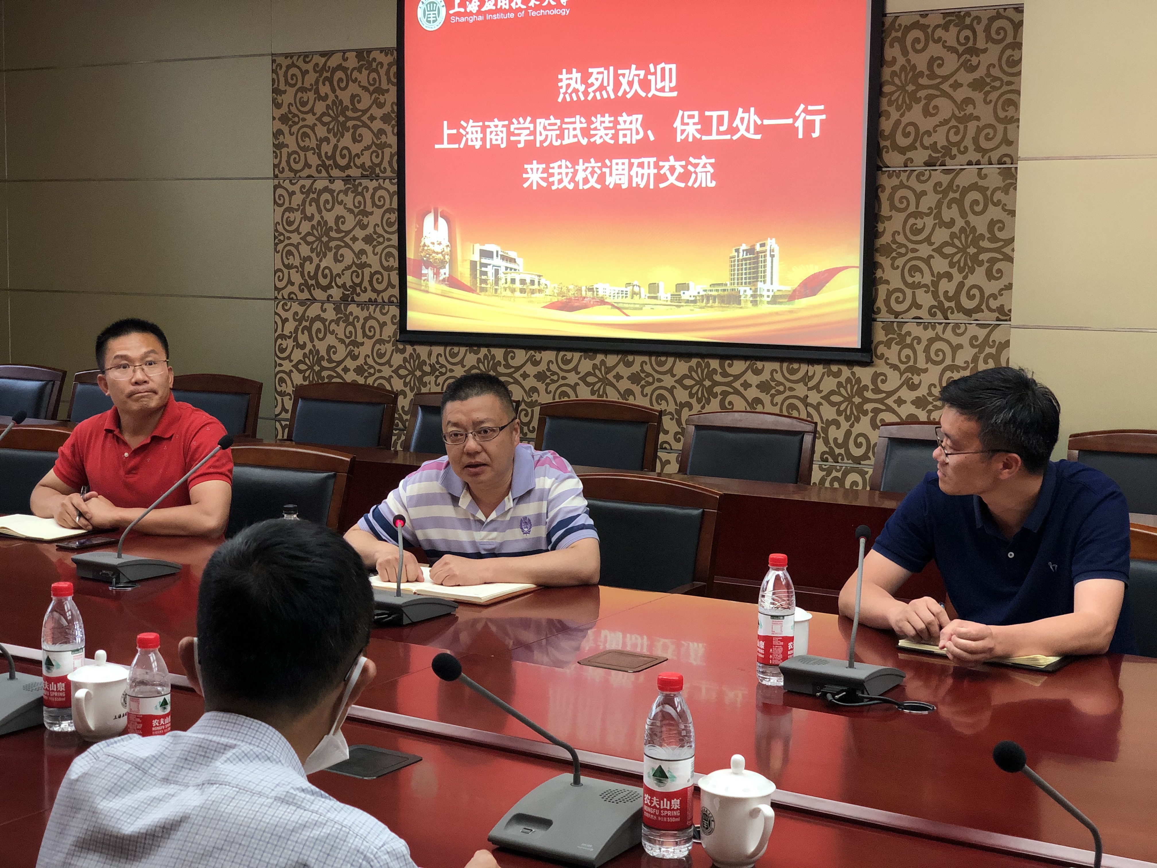 5月28日,上海商学院武装部部长、保卫处处长蔡磊一行到我校调研交流人民武装与安全保卫工作。校人民武装部部长、安全保卫处处长杨军与处内各科室负责人热情接待,双方进行座谈交流。