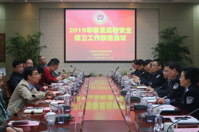 为贯彻落实党中央、国务院、市委市政府关于落实安全稳定的相关指示精神,进一步提升高等学校安全管理水平,确保高校校园安定运行,保障高校学习和生活秩序,上海市公安局奉贤分局(以下简称“分局”)于2019年3月21日在我校召开“2019年奉贤高校安全保卫工作联席会议”。上海应用技术大学党委副书记宋敏娟,上海师范大学副书记、副校长葛卫华,分局局党委委员、副局长顾联星,海湾旅游区管委会书记、主任李秋第,分局相关处室(部门)、派出所的领导及奉贤6所高校保卫处处长参加此次会议。